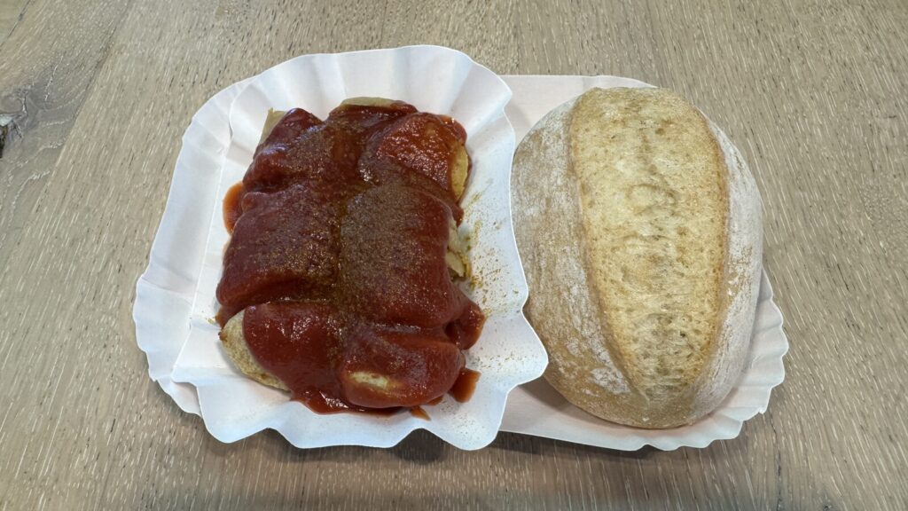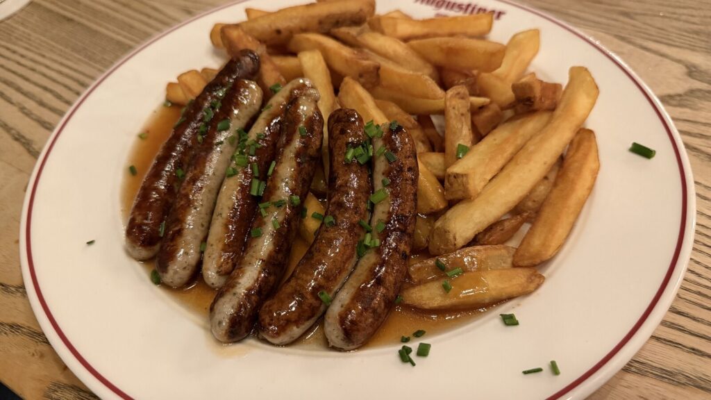 出国前の最後にご飯を食べるエリアがあったので、朝食?ランチ?も兼ねて、ソーセージを食べました!