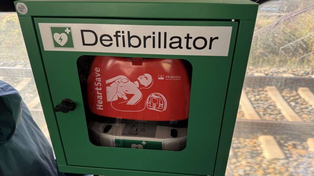 電車内で見かけたおそらく日本のAEDのようなものと思われるデバイス。