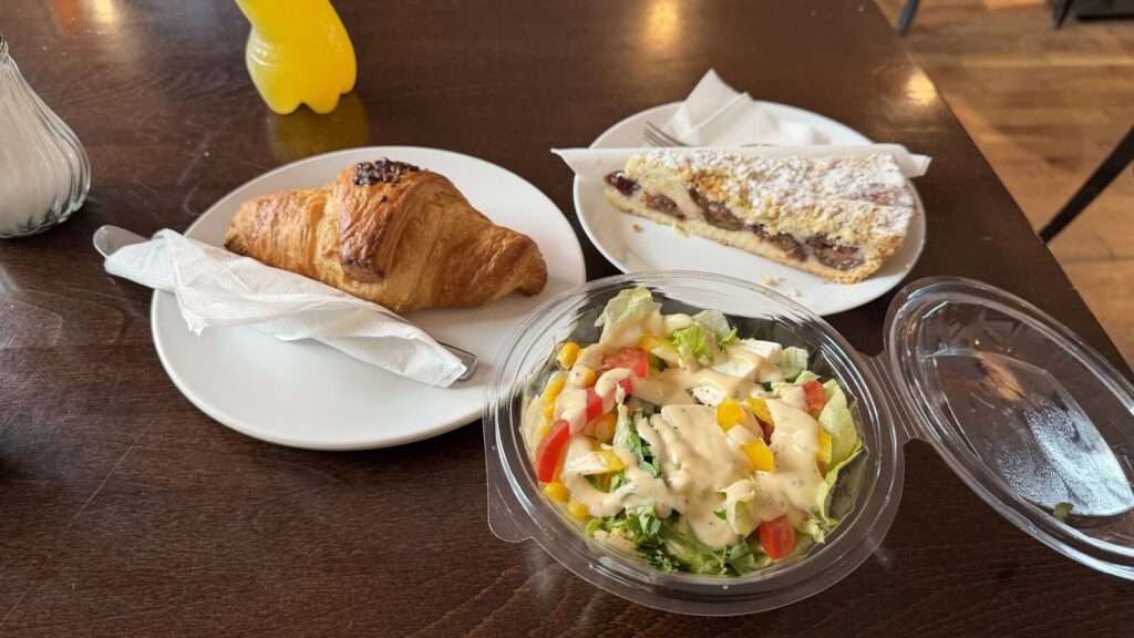 ただ20時間くらいの旅に耐えられるかは怪しいので、クロワッサンなどは諦め、まだ頑丈そうなプレッツェルを袋に入れて、持ち帰りました!笑