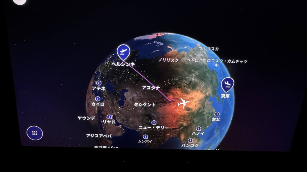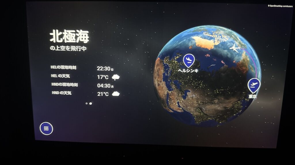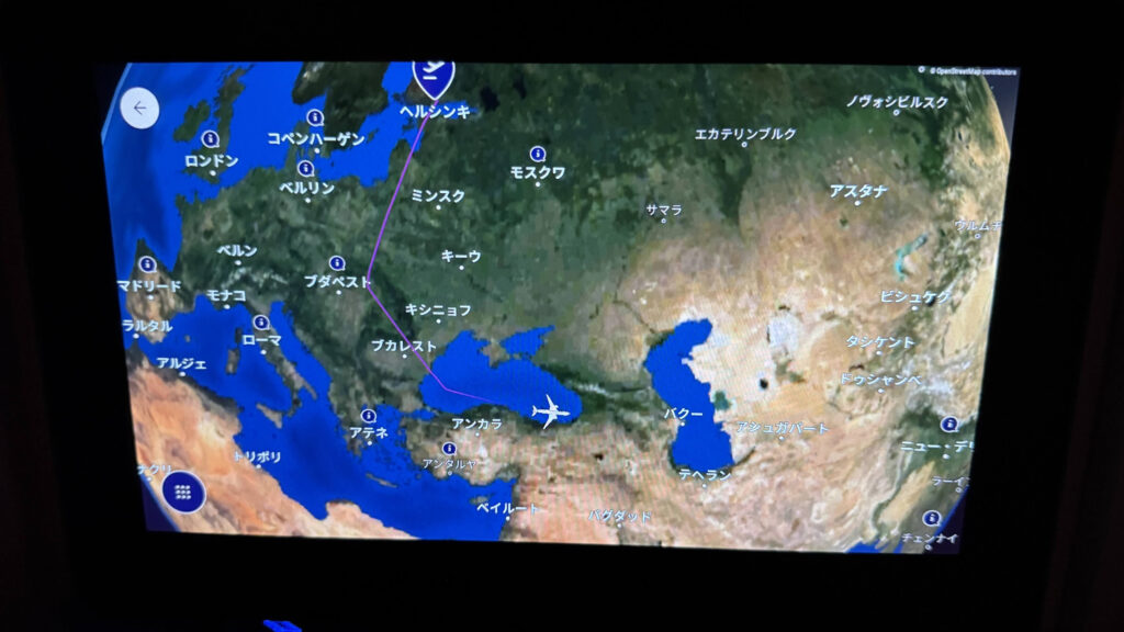 まず羽田空港からフィンランドのヘルシンキですが、羽田空港を21:50に出発し、ヘルシンキまでは約13時間のフライトで、現地時間の早朝に到着予定でした。