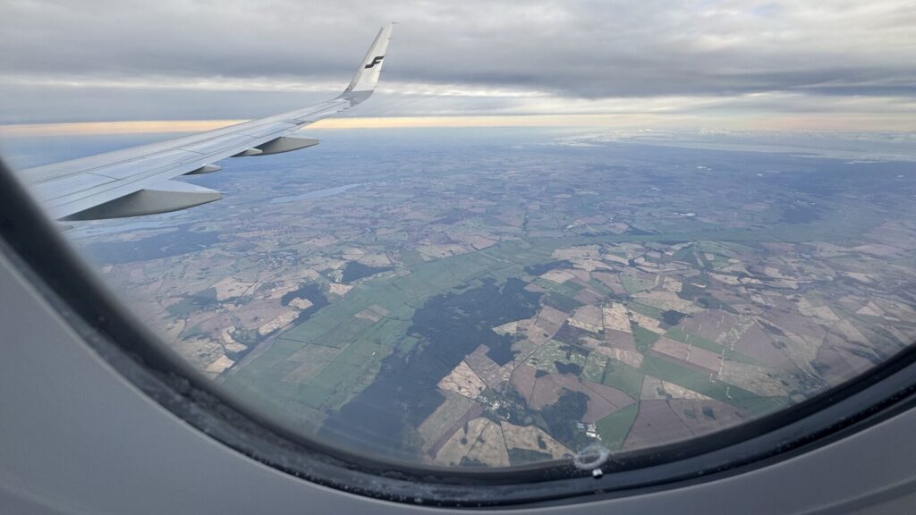 普段飛行機に乗る時は基本通路側の席を選ぶので、外の景色を見ることはないのですが、今回は設定された席が窓際だったので、フィンランド〜ドイツの景色を見ながらのフライトを楽しむことができました!