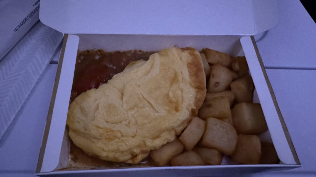 到着前に行きと同じオムレツの軽い機内色が出ました。
